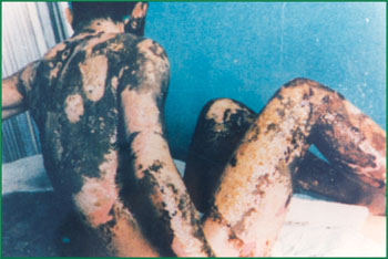化學(xué)燒傷對(duì)皮膚的進(jìn)行性損傷使創(chuàng)面加深,同時(shí)因毒素吸收而造成全身臟器功能受損,病情危重。燒傷濕潤(rùn)暴露療法配合全身支持療法,適用于各類(lèi)化學(xué)燒傷的治療并取得了顯著療效。