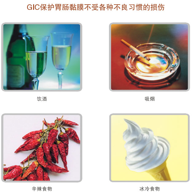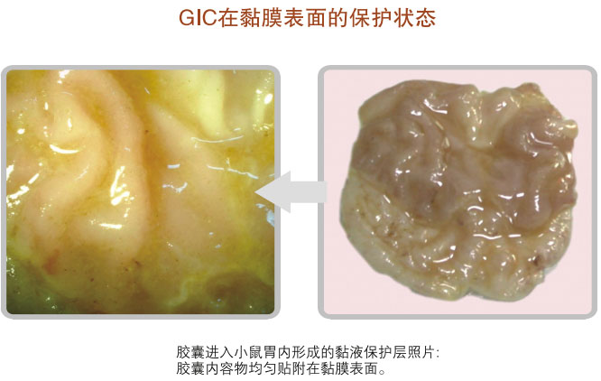 如果發(fā)生了損傷面,組合物與黏膜的高親和性使其能夠立即尋找并吸附在損傷面上,形成保護層,避免損傷面繼續(xù)受到損傷。通過上述的功效,本品不僅能夠保護胃腸黏膜不受損傷,還能夠保證人體維持正常的胃腸消化吸收功能。