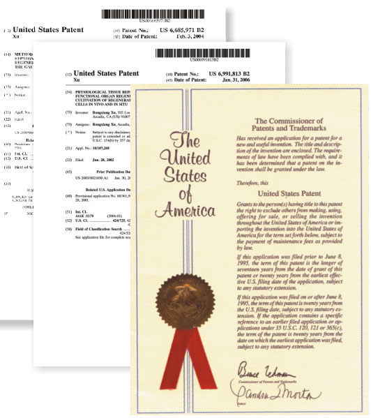 體內(nèi)原位培植再生干細胞實現(xiàn)組織修復(fù)和器官再生的組合物 (專利號:6,991,813)