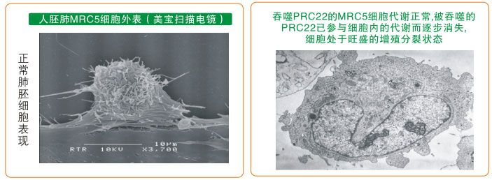 根據(jù)食品安全的基本原則,這個再生物質(zhì)被選出來后,要先確定這個物質(zhì)有沒有毒性。當(dāng)初美寶胃腸膠囊申請的時候,全部送到醫(yī)科大做的實驗,證明沒有任何毒性反應(yīng)。很多參加試驗的小白鼠吃了不但不死還變胖了。這個毒性實驗結(jié)果引起了我的思考,我就想它能不能預(yù)防癌癥?我就將世界上典型的用正常的細(xì)胞變成癌細(xì)胞的實驗拷貝出來做做試試。若放上再生物質(zhì),正常細(xì)胞變?yōu)榘┘?xì)胞就證明它沒有預(yù)防癌作用。最后的結(jié)果竟然是只要放上再生物質(zhì)就沒有一個正常細(xì)胞變癌細(xì)胞的。通過這個實驗結(jié)果我們可以看出了預(yù)防癌癥的結(jié)果,有了再生物質(zhì)后,用誘導(dǎo)的方法不能把細(xì)胞變?yōu)榘?。這個實驗結(jié)束后,我又研究看這個物質(zhì)和癌是什么關(guān)系,是讓癌細(xì)胞不長還是讓癌細(xì)胞壞死?歷時5年的癌癥研究后,終于有了結(jié)果。這個研究今天給大家看看。我們首先在動物上做的實驗,而后又用人體做的原位實驗。要知道肺癌是現(xiàn)在發(fā)病率最高的一個癌癥,放療化療治療效果幾乎都是零,即使把腫瘤切除了也只能活幾年,甚至人們還在統(tǒng)計學(xué)上找不出到底手術(shù)治療和采用非手術(shù)治療哪個死得快的明顯差異?,F(xiàn)在還沒找到對肺癌的治療的更好辦法。我們利用潛能再生細(xì)胞,用11號、12號、21號、22號、31號再生物質(zhì)等,每一個細(xì)胞相對一種型號的物質(zhì),我們現(xiàn)在吃的膳素是共210號。其中6個型號都是針對肺細(xì)胞的,讓肺細(xì)胞再生,在篩選中并不是所有讓細(xì)胞再生的物質(zhì)都能產(chǎn)生這個抗癌作用。我們做的實驗,首先看物質(zhì)對人的癌細(xì)胞及正常肺細(xì)胞對照比較有什么作用,首先11號、12號、22號使正常細(xì)胞都正常生長,同時癌細(xì)胞放這個型號物質(zhì)也發(fā)生了變化。其中比較好的是22號物質(zhì)。人們現(xiàn)在抗癌方法基本上是既能殺癌細(xì)胞又能殺好細(xì)胞。而我們通過實驗說明加入的這個22號物質(zhì)讓好的細(xì)胞生長,又能殺癌細(xì)胞。所以我們將這三個號的物質(zhì)作為人的再生物質(zhì)的實驗,也用在人吃的營養(yǎng)物質(zhì)上面。好多食物里面的東西都是讓癌細(xì)胞死,好細(xì)胞也死,還沒發(fā)現(xiàn)一種物質(zhì)能夠讓癌細(xì)胞死,好細(xì)胞活。但是我們找到的再生營養(yǎng)物質(zhì)既能讓好細(xì)胞活又能讓癌細(xì)胞死。這里面的機(jī)密是什么?大家來看看,這是人的正常肺細(xì)胞,我們用電子顯微鏡看它的形態(tài)。它吞噬了這個22號物質(zhì)后,這個細(xì)胞活著,并且開始分裂,再生物質(zhì)逐漸被細(xì)胞利用,再生物質(zhì)參與到細(xì)胞的建設(shè)中,而且這個細(xì)胞吞了再生物質(zhì)后就開始再生,分裂旺盛,但沒有變成其他異常細(xì)胞。這個是沒有吃再生物質(zhì)的好細(xì)胞,所以它的細(xì)胞核在同一時間沒有分裂。同樣的物質(zhì)給癌細(xì)胞吃進(jìn)去后,癌細(xì)胞的吸附能力開始降低,細(xì)胞里面的臟器變形了,然后就死亡了。細(xì)胞死亡有兩種,一種是細(xì)胞自殺,另一種是細(xì)胞破了。而這個癌細(xì)胞沒有破,屬于癌細(xì)胞自殺。