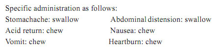 these occurs, taking 5 MEBO GICs in time. Dose can be increased until the symptom is relieved. In the treatment of severe vomit, administer GIC by chewing.