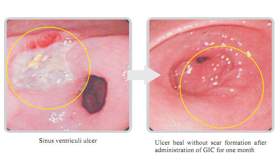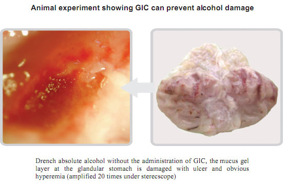 GIC can prevent gastrointestinal mucosa from the damage of the habit disturbance such as: drinking, smoking, spicy and cold food.