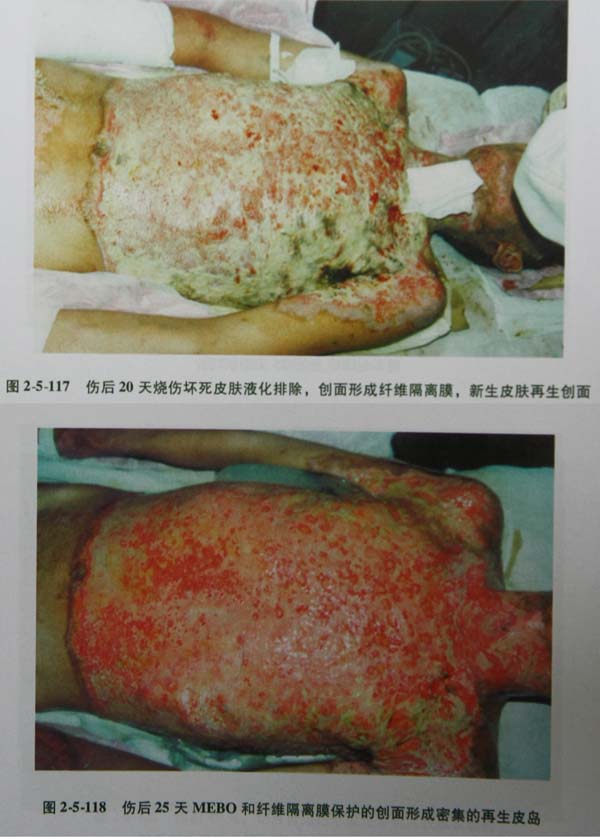 (4)應(yīng)在傷后20天內(nèi)徹底清除壞死組織使創(chuàng)面新鮮再植皮,消除創(chuàng)面。