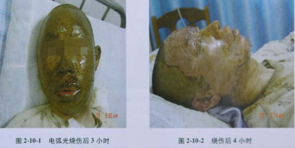 1面部Ⅲ度深型燒傷指除皮膚全層燒傷外,尚合并深筋膜下肌肉組織以及骨質(zhì)的燒傷。