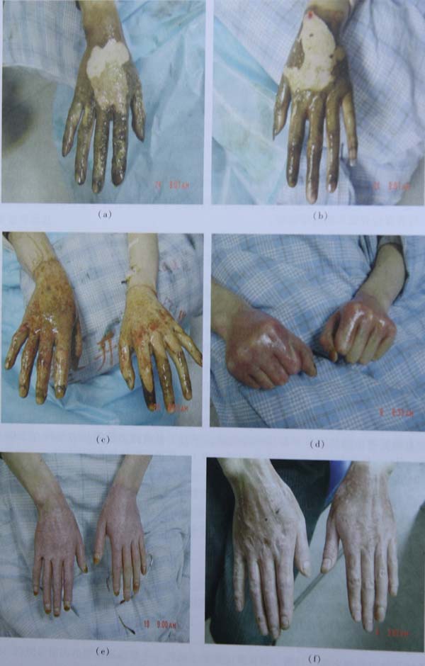手部深度燒傷后給患者帶來了巨大的心理負(fù)擔(dān),有的影響到臨床治療。我們根據(jù)患者不同的個性、不同的文化層次制定了不同形式的心理護(hù)理措施,增進(jìn)醫(yī)患交流,讓病人知曉燒傷的深度和面積,了解MEBT/MEBO治療燒傷的簡明原理,了解增生性瘢痕發(fā)生與轉(zhuǎn)歸過程,使傷員積極配合臨床治療與康復(fù)醫(yī)療,促進(jìn)手功能恢復(fù)。