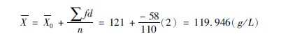 示例362某醫(yī)院測檢了110例特重度燒傷病人血液血紅蛋白含量,其濃度范圍在115~150g/L之間,頻數(shù)分布情況見表361,利用組中值方法計算他們的平均血紅蛋白濃度。