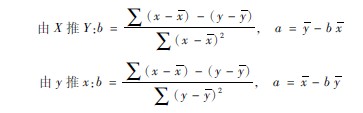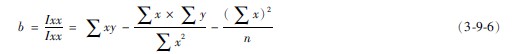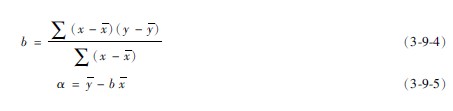 式中y為估計值;α為常數(shù),也稱為截距,即當(dāng)x等于零時在回歸直線軸上的交點;b為回歸系數(shù),它是回歸直線的斜率,其意義是每當(dāng)x變動一個單位,則y隨之變動b個單位。
