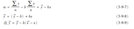 3根據(jù)公式(396)、(397) 、(398),求b、α和回歸方程。