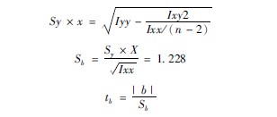 用t檢驗方法檢驗回歸系數(shù)(b)是否顯著,先根據(jù)以下公式分別計算sy、x和回歸系數(shù)的標準誤(sb),然后計算t值。其公式分別為 (3910)、(3911) 、(3912):