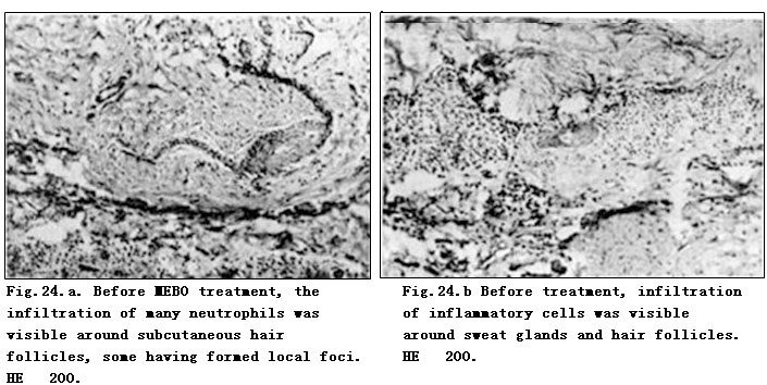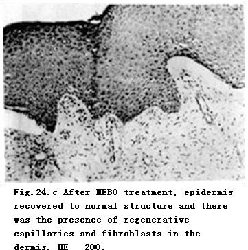 Pathological examination revealed satisfactory healing of the burns wounds treated with MEBO without formation of obvious hyperplasic scar tissue.