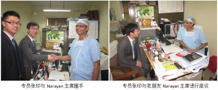 同時(shí),應(yīng)本屆印度國(guó)家燒傷主席Narayan教授的邀請(qǐng)(該醫(yī)院前任院長(zhǎng)),張印專(zhuān)員與老朋友Narayan教授進(jìn)行了座談。雙方就燒傷再生醫(yī)學(xué)在印度的發(fā)展進(jìn)行了會(huì)晤,并對(duì)2014年印度國(guó)家燒傷年會(huì)的參會(huì)事宜、整體安排達(dá)成了一致。Narayan教授高度贊揚(yáng)了胡棟材教授的演講,并要求跟胡棟材教授學(xué)習(xí)微粒皮種植技術(shù),于此同時(shí)Narayan教授盛情邀請(qǐng)燒傷再生醫(yī)學(xué)專(zhuān)家來(lái)印度醫(yī)科大學(xué)進(jìn)行講學(xué)。
