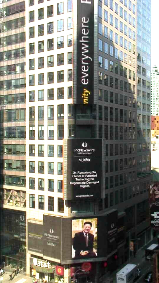 今日,國際頂級地標(biāo)紐約時(shí)代廣場新聞報(bào)道美國總統(tǒng)發(fā)展“損傷器官再生”國策專利權(quán)人、人體再生復(fù)原科學(xué)發(fā)明人徐榮祥教授。