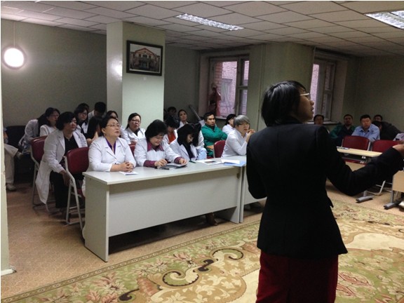 2月20日中午12點(diǎn),美寶團(tuán)隊(duì)來(lái)到烏蘭巴托的青格爾泰區(qū)中心醫(yī)院,培訓(xùn)內(nèi)容涵蓋了出席的20位醫(yī)生專業(yè)領(lǐng)域,包括再生療法在糖尿病潰瘍,褥瘡,靜脈潰瘍,創(chuàng)傷,手術(shù)創(chuàng)面及婦科應(yīng)用。醫(yī)生們對(duì)展示的典型案例很感興趣,詢問(wèn)了具體的治療過(guò)程,換藥操作,并且又一次表達(dá)了試用疤痕平的愿望。Myadagmaa 醫(yī)生是該院的婦產(chǎn)科醫(yī)生,看到展示的婦科手術(shù)創(chuàng)面的應(yīng)用后,急切的咨詢?cè)趮D科方面的其它應(yīng)用,張美艷介紹了再生療法在宮頸電環(huán)切除術(shù),剖腹產(chǎn)手術(shù),腹腔鏡手術(shù),會(huì)陰切開(kāi)術(shù),會(huì)陰撕裂傷及宮頸糜爛等方面的應(yīng)用,與醫(yī)生互換了名片,贈(zèng)送了美寶的學(xué)習(xí)光盤(pán)及幾年品,答應(yīng)通過(guò)郵件等方式解答病例咨詢及臨床應(yīng)用問(wèn)題。