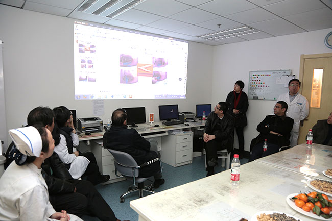 宣武中醫(yī)院李副院長、科教科主任和外科主任張勇教授歡迎外賓的到來,張勇主任首先介紹了徐榮祥教授與宣武醫(yī)院深厚的歷史淵源。早在1987年,徐榮祥教授就在該院普及推廣應(yīng)用再生技術(shù),治療了大量的燒傷創(chuàng)瘍患者。多年來,宣武中醫(yī)院秉承徐教授的教誨,繼續(xù)規(guī)范的應(yīng)用再生技術(shù),治療了大量的燒傷創(chuàng)瘍患者,并多次獲得獎項(xiàng)。張主任通過病理圖片等資料向外賓介紹了成功應(yīng)用再生技術(shù)的病例。隨后在肖摩教授的陪同下來到燒傷創(chuàng)瘍病房,各位專家認(rèn)證觀摩了正在應(yīng)用再生技術(shù)治療的糖尿病足、壓瘡等患者,兩位已經(jīng)痊愈的患者向外賓介紹了治療的經(jīng)過及對醫(yī)院采用新技術(shù)治療疑難疾患的感受。哈佛的專家連連盛贊北京宣武中醫(yī)院應(yīng)用再生技術(shù)取得顯著療效和成果。