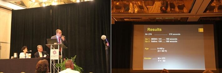 8月30日上午,MohamedSakr教授以“Assessmentof Regenerative Therapy (MEBT/MEBO) in Healing ofVariousOpen Wounds: A Multicenter Controlled Randomized Trial”為題發(fā)表了燒傷再生醫(yī)學在260余例燒傷、創(chuàng)傷、糖尿病足潰瘍領域應用的研究報告,深深吸引了在座參會專家。