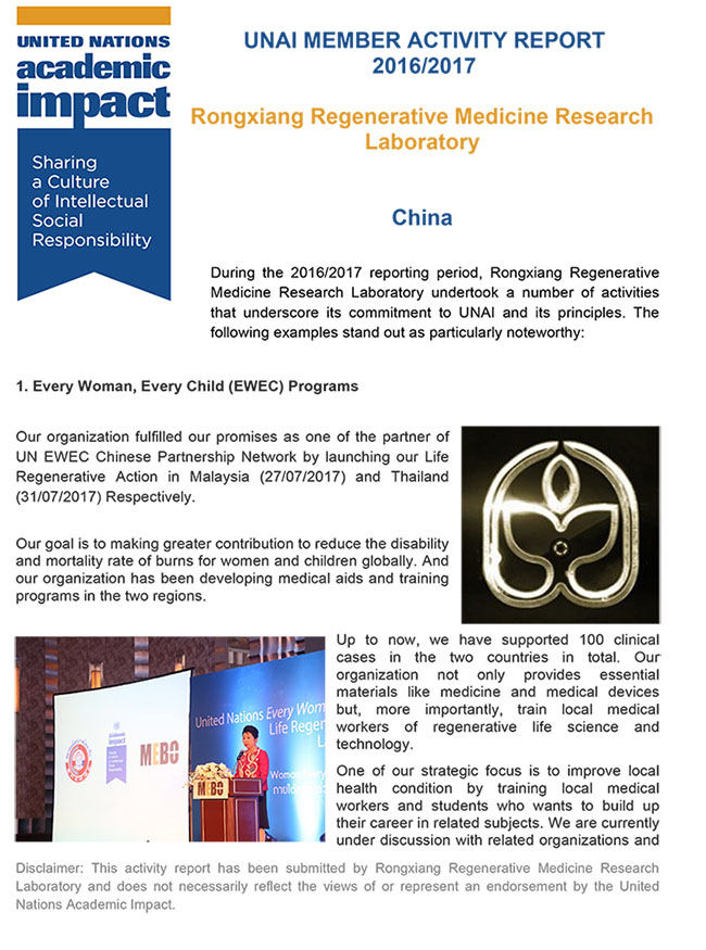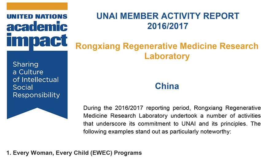 “ 聯(lián)合國學(xué)術(shù)影響”成員報告北京榮祥再生醫(yī)學(xué)研究所相關(guān)展示內(nèi)容如下: