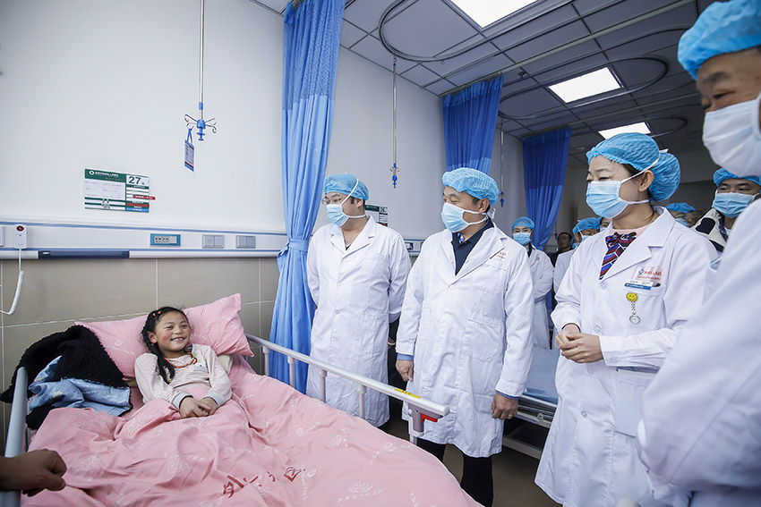 徐鵬一行還參觀了燒傷創(chuàng)瘍科、兒科等科室。一個(gè)因翻車壓傷造成跟骨外露并拒絕做手術(shù)的西藏小女孩,在燒傷創(chuàng)瘍再生醫(yī)療技術(shù)的治療下,正在很好的復(fù)原中,不會講漢語的父親一直豎著大拇指,表達(dá)著對醫(yī)生的謝意,對技術(shù)的贊美。這一幕深深觸動(dòng)了現(xiàn)場的每一位來訪者,中國人民對外友好協(xié)會美大部副主任吉擁軍表達(dá)了自己特別的感動(dòng)之情,并表示再一次在現(xiàn)場切實(shí)感受到了“生命再生”項(xiàng)目的意義,感受到了源自中國的燒傷創(chuàng)瘍再生醫(yī)療技術(shù)通過“生命再生”行動(dòng)走向世界的價(jià)值。