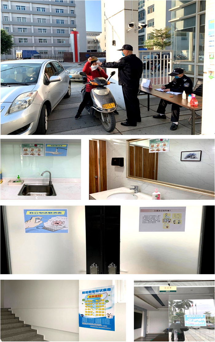 復工時,及時收集員工的健康情況及活動流向,重點排查外地員工居住信息和返崗動態(tài),嚴格管理返汕員工,要求外地返崗人員自抵達汕頭后當日起向單位報備并居家隔離觀察14天;配合國家及本地區(qū)關于防控疫情相關政策,及時通知員工關于防控、應急信息,加強復工復產后新冠肺炎防治知識科學宣傳普及,引導企業(yè)員工充分了解新冠肺炎防治知識,科學理性認識疫情,掌握防護要點,增強防護意識,理解、支持并配合防控工作;加強員工健康監(jiān)測,要求全體返崗人員按要求進行每日登記、記錄體溫、外出動向和佩戴口罩等健康管理措施;嚴格控制上班期間人員進出,設置門口體溫測量及雙手消毒區(qū)域,并要求佩戴口罩;加強樓內各區(qū)域圖片警示告知,提高員工自我防護意識和能力;疫情期間,公司食堂采用分餐及分散輪流單獨就餐的形式,避免扎堆聚餐,就餐期間避免面對面就餐交流,盡量減少人員集中場所的駐留時間;做好工作場所物體表面的清潔消毒,保持環(huán)境整潔衛(wèi)生,定期消毒并做好清潔消毒記錄,辦公室勤開窗,加強工作場所通風換氣,保持室內空氣流通,多人辦公時需佩戴口罩。