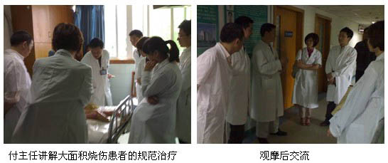2011年6月1日,大邑縣骨科醫(yī)院急診科曹林主任和黃蓉護(hù)士長(zhǎng)等一行6人在四川省中西醫(yī)結(jié)合學(xué)會(huì)燒傷專委會(huì)朱春紅同志的陪同下,來到雅安市人民醫(yī)院燒傷整形科參觀學(xué)習(xí),雅安市人民醫(yī)院燒傷整形科付子俊主任熱情的接待了來賓,付子俊主任陪同大家來到病房,曹林主任一行認(rèn)真觀摩了大面積深度燒傷患者和創(chuàng)瘍患者的再生技術(shù)規(guī)范治療,同時(shí)還通過臨床觀摩付子俊主任就臨床的病人治療要點(diǎn)、治療注意事項(xiàng)等向他們做了詳細(xì)的介紹和講解。臨床觀摩后付子俊主任在醫(yī)生辦公室和大家交流,他向大家介紹了雅安市人民醫(yī)院和科室發(fā)展情況,同時(shí)將自己使用再生醫(yī)療技術(shù)的心得毫無保留的傳授給大家,對(duì)大家提出的問題一一做了詳細(xì)解答。曹林主任激動(dòng)的說:這次雅安之行收獲特別大,非常感謝省學(xué)會(huì)和付主任的幫助和支持,回去后一定用再生醫(yī)療技術(shù)為患者造福。