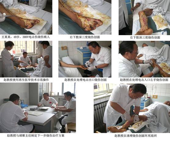 進(jìn)入盛夏的8月份,北京燒傷創(chuàng)瘍瘍研究所副所長趙瑞慶教授應(yīng)山東聊城中醫(yī)院、山東牟平人民醫(yī)院、山西襄汾縣中醫(yī)院、山西省曲沃縣人民醫(yī)院、山西省洪洞縣中醫(yī)院的邀請,先后搶救了兩例大面積燒傷患者,其中一例高壓電電擊燒傷患者,使用再生醫(yī)學(xué)技術(shù)取得了良好的臨床治療效果,同時(shí),趙瑞慶教授還指導(dǎo)當(dāng)?shù)蒯t(yī)院使用再生醫(yī)學(xué)技術(shù)治療難愈合傷口也收到了滿意的療效。