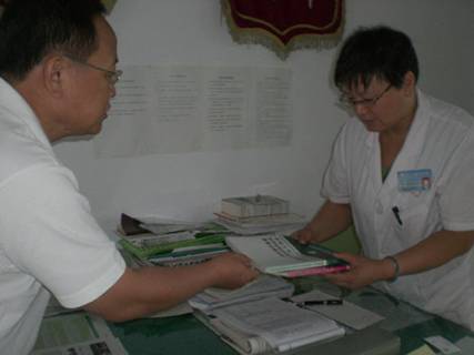 趙教授代表北京燒傷創(chuàng)瘍研究所向襄汾中醫(yī)院糖尿病科王志芳主任贈(zèng)書