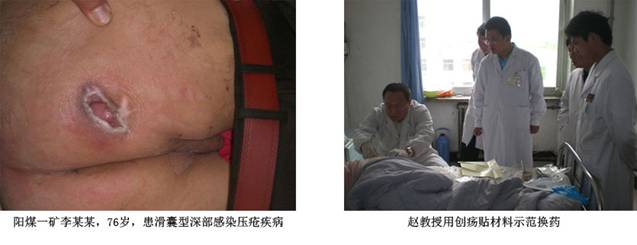 簡訊6:8月23日,在山西省陽泉煤礦一礦醫(yī)院指導(dǎo)使用創(chuàng)瘍帖治療滑囊型深部感染患者。