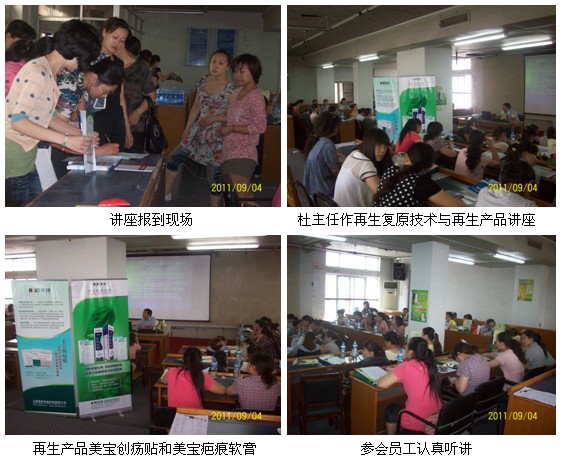 2011年9月4日應(yīng)連云港市康濟(jì)大藥房連鎖公司的邀請中國中西醫(yī)結(jié)合學(xué)會燒傷專業(yè)委員會委員、北京美寶燒傷創(chuàng)瘍研究所臨床部杜福勤主任與學(xué)會駐江蘇辦事處劉恒主任、周銀梅同志在該公司大會議室作再生復(fù)原技術(shù)及再生產(chǎn)品講座,講座由公司管理部莊華主任主持,參會的有全市連鎖藥房,70余名員工參與了講座學(xué)習(xí)。