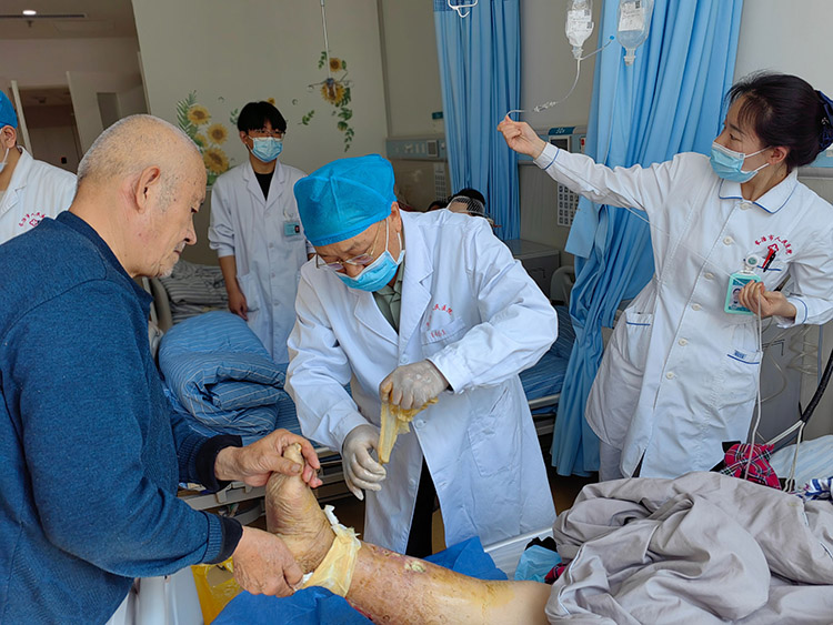 2024年10月23日,應(yīng)通州區(qū)人民醫(yī)院、通州第三醫(yī)院之邀,《中國燒傷創(chuàng)瘍雜志》常務(wù)編委、燒傷創(chuàng)瘍再生醫(yī)療技術(shù)臨床專家趙瑞慶,分別在兩家醫(yī)院會診了5例慢創(chuàng)患者(雙下肢靜脈曲張15年潰瘍、三度壓瘡9*9cm、二例皮膚外傷久經(jīng)未愈、一例皮膚腫瘤潰瘍),事后經(jīng)病案討論,制定出個性化的治療方法,受到當(dāng)?shù)蒯t(yī)護人員及家屬的稱贊,還建立了通信網(wǎng)絡(luò),后期將進一步治療與跟進指導(dǎo)。