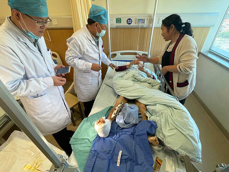 為推動黨史學(xué)習(xí)教育走深走實,扎實開展"我為群眾辦實事"實踐活動,2024年10月25日下午,湖北宜昌“枝江市人民醫(yī)院臨床外科黨支部燒傷慢創(chuàng)防治先鋒隊”,“枝江市人民醫(yī)院天使志愿服務(wù)隊”李翔主任,余春子護士長和徐榮祥再生生命公益基金志愿者杜繼同志等,到訪問安鎮(zhèn)和仙女鎮(zhèn)高峰橋村,開展護理延伸服務(wù)入戶服務(wù)活動。李主任和護士長及管床醫(yī)師一直心系高齡患者恢復(fù)情況,看到患者創(chuàng)面無感染,基本愈合,倍感安慰,護士長還給予居家照護和健康指導(dǎo)等,老人收到生活慰問品和慰問指導(dǎo)時深表感謝!院外延伸服務(wù)是醫(yī)院提高醫(yī)療質(zhì)量、提升服務(wù)品質(zhì)、改善醫(yī)患關(guān)系的重要手段。護理延續(xù),讓關(guān)愛延伸!