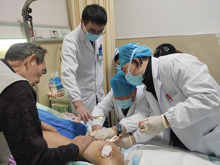 10月22日,應(yīng)海安市中醫(yī)院之邀,《中國燒傷創(chuàng)瘍雜志》常務(wù)編委、燒傷創(chuàng)瘍再生醫(yī)療技術(shù)臨床專家趙瑞慶,在該院會診了2例慢創(chuàng)病人(下肢外傷內(nèi)固定術(shù)后鋼板外露、多發(fā)性壓迫性潰瘍)。之后在科內(nèi)進行了《再生技術(shù)治療十大慢創(chuàng)疾病》的培訓(xùn),耐心地解答了大家提出的諸多臨床問題,承諾踐行走基層活動得到當(dāng)?shù)蒯t(yī)護人員的一致好評!