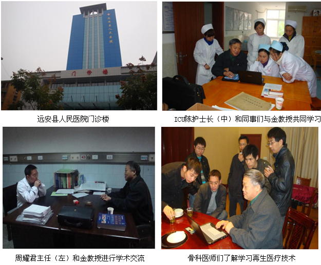 2010年12月17日,中國中西醫(yī)結合學會燒傷專業(yè)委員會金黨軍教授來到湖北省宜昌遠安縣人民醫(yī)院,分別走訪了該院的ICU和骨外科。該院骨科周耀君主任和ICU陳護士長分別組織科室醫(yī)護人員向金教授學習了“原位再生復原醫(yī)療技術在創(chuàng)傷潰瘍褥瘡等創(chuàng)面的臨床應用”,金教授向大家介紹了原位再生醫(yī)療技術要點,規(guī)范創(chuàng)面換藥處理方式和原則,以及應用該技術對多發(fā)性特大褥瘡,糖尿病足,擠壓傷等病例的治療方法和注意事項。隨后,醫(yī)護人員就實際工作中遇到的問題與金教授進行了交流,并表示在以后治療過程中,將規(guī)范換藥技術,提高護理質量。