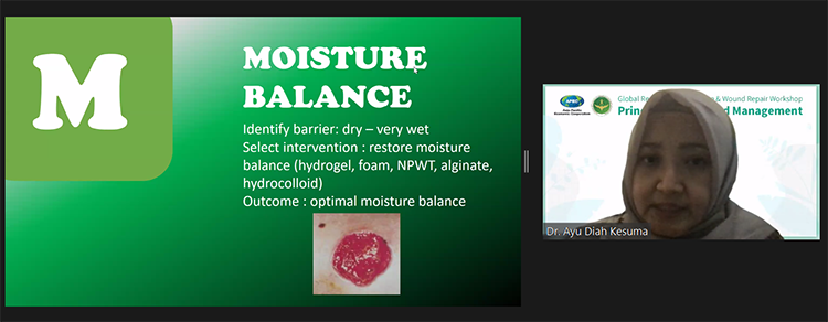首位講者是來(lái)自印尼Pertamina中央醫(yī)院的整形重建外科醫(yī)生Dr. Ayu Diah Kesuma,她帶來(lái)了題為《創(chuàng)面評(píng)估》的演講。她在演講中討論了創(chuàng)面評(píng)估工具、疼痛評(píng)估、創(chuàng)面感染評(píng)估等,深入地講解了治療過(guò)程中動(dòng)態(tài)評(píng)估的相關(guān)內(nèi)容。
