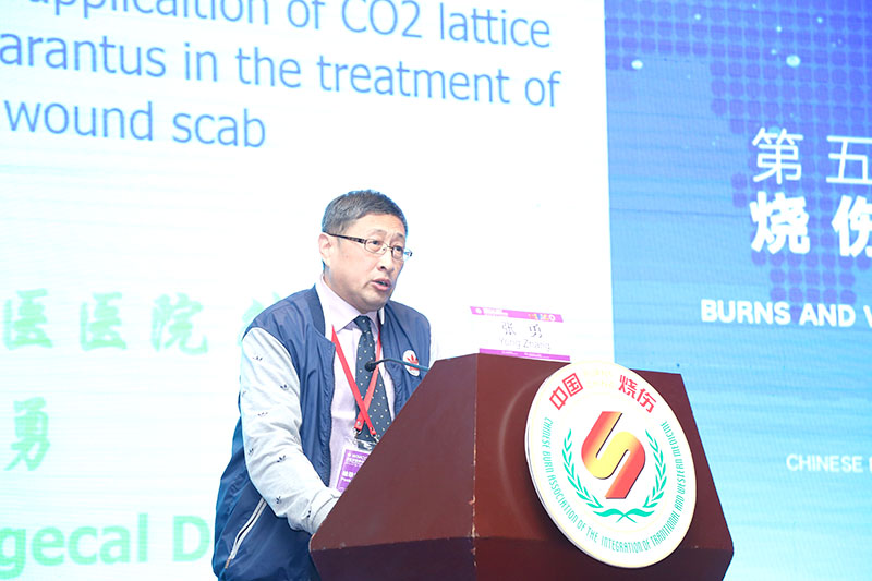 中國中西醫(yī)結(jié)合學會燒傷專業(yè)委員會常務(wù)委員、北京市宣武中醫(yī)醫(yī)院外科主任張勇做了題為“CO2激光治療儀在燒傷創(chuàng)面痂皮上的臨床應(yīng)用探討”,通過觀察CO2激光打孔除痂療法與早期耕耘療法對中小面積Ⅲ度燒傷創(chuàng)面痂皮的溶痂效果進行臨床對比觀察并總結(jié)經(jīng)驗。