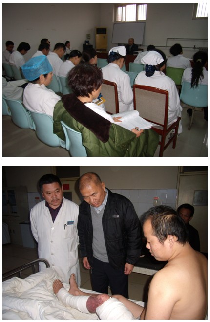 天津市靜??h中醫(yī)院燒傷創(chuàng)瘍治療中心,以治療燒傷和創(chuàng)瘍類疾病為核心,在當?shù)赜绊懞艽蟆?BR>      2011年11月28日,天津市靜??h中醫(yī)院科教科長主持關于“人體再生復原醫(yī)療技術在多學科臨床應用”的學術講座,特邀請了中國中西醫(yī)結合學會燒傷專業(yè)委員會、北京美寶燒傷創(chuàng)瘍研究所專家樊兆宗主任為該醫(yī)院80名醫(yī)務人員及部分鄉(xiāng)鎮(zhèn)診所醫(yī)生進行講解,樊教授向大家介紹了人體再生復原醫(yī)療技術及其再生系列產(chǎn)品的功能,并利用大量的臨床圖片資料和國內(nèi)外臨床應用再生復原醫(yī)療技術治療的真實病例,詳細地向大家講解了人體再生復原醫(yī)療技術治療各種難愈性創(chuàng)面、斷指再生的機理,對于各種燒傷的治療也做了重點介紹,另外還介紹了徐教授創(chuàng)立的人體再生復原醫(yī)療技術在各學科的應用和研究,及各種創(chuàng)面治療的規(guī)范換藥流程、處理方法、注意事項及美寶產(chǎn)品在臨床應用的療效。樊教授還對與會醫(yī)生提出的問題給予了解答。此次學術講座深受醫(yī)務人員的歡迎,使醫(yī)院醫(yī)生對再生醫(yī)療技術有了更深刻地認識,提高了醫(yī)生的醫(yī)療技術和治療水平,解決了縣級醫(yī)生臨床遇到的難題,樊主任親臨病房巡診,向史主任和其他醫(yī)生介紹臨床遇到的難題如何治療。大家表示希望以后有更多機會接受再生復原醫(yī)療技術的專業(yè)培訓,更好地服務于更多患者。院長代表全院向美寶集團派來專家來院講座表示感謝。