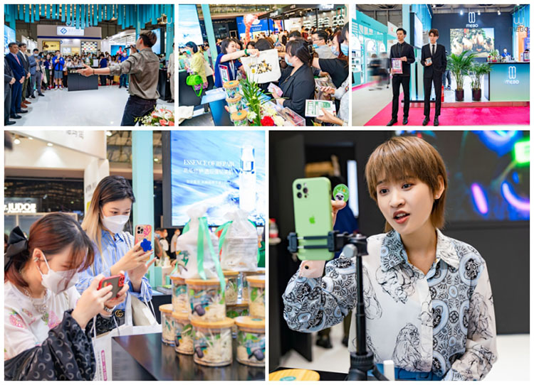 美寶展臺(tái)現(xiàn)場(chǎng)活動(dòng)不斷,精彩紛呈,人流匯聚。不僅ALL IN男團(tuán)成員、華語(yǔ)樂(lè)壇新生代實(shí)力派歌手傾情演唱,將氣氛拉到高潮;更有抖音紅人應(yīng)邀來(lái)到,和大家現(xiàn)場(chǎng)分享護(hù)膚秘籍,并在抖音賬號(hào)直播間送出多重福利,引爆流量。