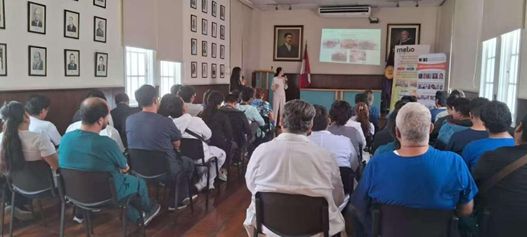 在利馬、特魯希略和阿雷基帕等地還舉辦了一系列技術(shù)研討會(huì)。多名長期應(yīng)用再生醫(yī)學(xué)技術(shù)的資深醫(yī)生參與了此次再生技術(shù)專業(yè)交流活動(dòng)。美寶國際技術(shù)部主任徐巍巍系統(tǒng)介紹了再生醫(yī)學(xué)技術(shù)的三種主要標(biāo)準(zhǔn)換藥方式,對醫(yī)護(hù)人員運(yùn)用再生醫(yī)療技術(shù)處理創(chuàng)面的方法進(jìn)行了系統(tǒng)性規(guī)范,從而確保技術(shù)應(yīng)用更加精準(zhǔn)、高效。