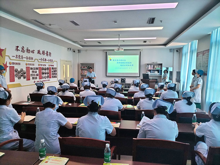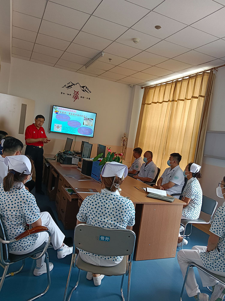 2023年7月26日,中國中醫(yī)藥高等教育學會臨床教育研究會肛腸分會常務(wù)理事、北京中西醫(yī)結(jié)合學會燒傷專業(yè)委員會副主任委員、北京中醫(yī)藥學會肛腸專業(yè)委員會委員、《中國燒傷創(chuàng)瘍雜志》常務(wù)編委張勇,受邀來到阜新市第二人民醫(yī)院,張勇教授本次主講再生醫(yī)療技術(shù)在難愈合性創(chuàng)面的臨床應用和優(yōu)勢,張勇教授用豐富的臨床經(jīng)驗,詮釋了再生醫(yī)療技術(shù)在護理工作中的重要性、實用性,分享了在燒傷、壓瘡、糖尿病足、皮膚科、內(nèi)分泌以及肛腸科等學科的典型病例,講述了再生醫(yī)療技術(shù)在臨床應用中的優(yōu)勢,學術(shù)交流過后,張勇教授與護理部主任,護士長進一步探討交流,并對門診患者進行換藥實操指導,此次學術(shù)交流為醫(yī)院護理工作鋪墊了新臺階,為阜新地區(qū)慢性難愈合創(chuàng)面患者帶來福音。