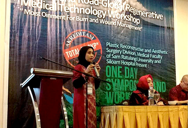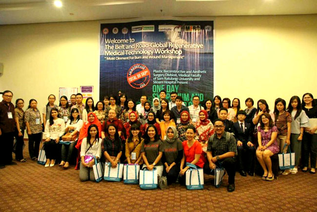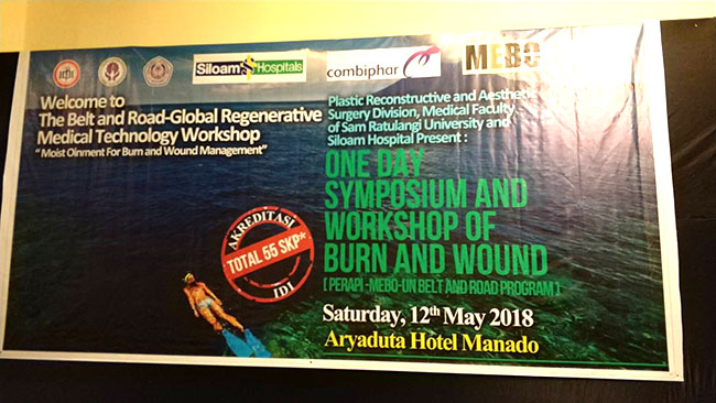 5月12日,由美寶和Combiphar主辦的第一期大型再生醫(yī)學(xué)培訓(xùn)班在印度尼西亞美娜多市成功舉辦。來自雅加達(dá)Koja整形醫(yī)院、Pelni/Rawamangun/Poli等醫(yī)院燒傷創(chuàng)瘍科、兒童醫(yī)院、武警醫(yī)院的8名再生醫(yī)學(xué)專家和美娜多當(dāng)?shù)豐iloam醫(yī)院、周邊地區(qū)社區(qū)醫(yī)院、當(dāng)?shù)孛襟w等共255人參加了本次活動(dòng),詳細(xì)報(bào)道如下: