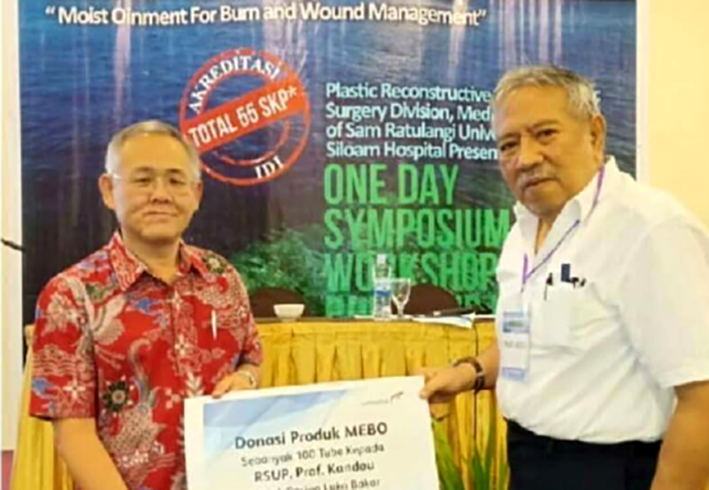 會(huì)后,由Combiphar公司總裁 Mr. Wong代表美寶國際向Siloam醫(yī)院捐贈(zèng)了100支燒傷膏,旨在讓當(dāng)?shù)刎毨Щ颊咭材芟硎艿皆偕t(yī)學(xué)的成果。