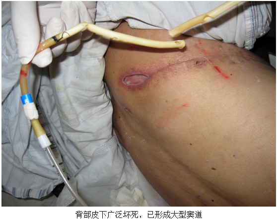 2013年元月15日,三門峽市黃河醫(yī)院外科朱凱主任邀請中國中西醫(yī)結(jié)合學(xué)會燒傷專業(yè)委員會委員、北京美寶燒傷創(chuàng)瘍研究所臨床部主任陳全喜來到黃河醫(yī)院外科會診右側(cè)背部肋下廣泛肌肉壞死(已在外省治療9個月,因連續(xù)發(fā)熱不退,轉(zhuǎn)黃河醫(yī)院外科)的高齡危癥病人。