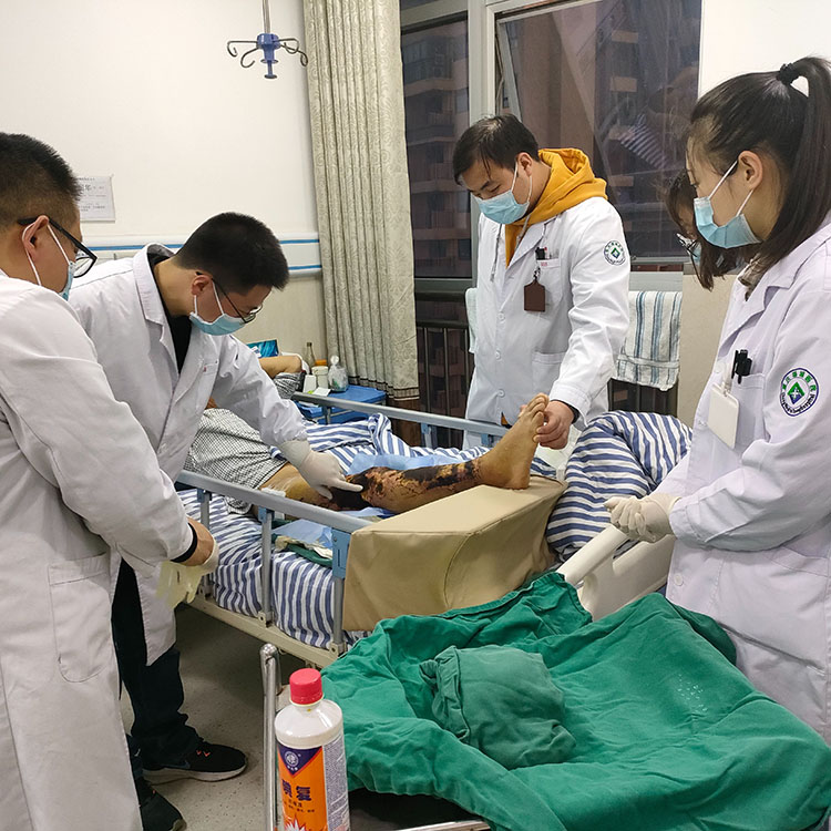 3月14日,九龍坡區(qū)第二人民醫(yī)院張孝平主任受邀來到江津福城醫(yī)院,會診一例車禍傷病人,并同科室主任及醫(yī)生一起給病人換藥,獲得大家一致好評,隨后還會診了一例內(nèi)科壓瘡病人,指導了如何換藥清創(chuàng)等。