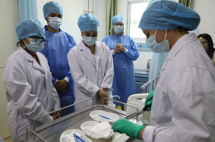 接著院方帶領(lǐng)大家參觀了醫(yī)院的護(hù)士站,學(xué)生們現(xiàn)場(chǎng)觀摩了護(hù)士的操作規(guī)范和流程。