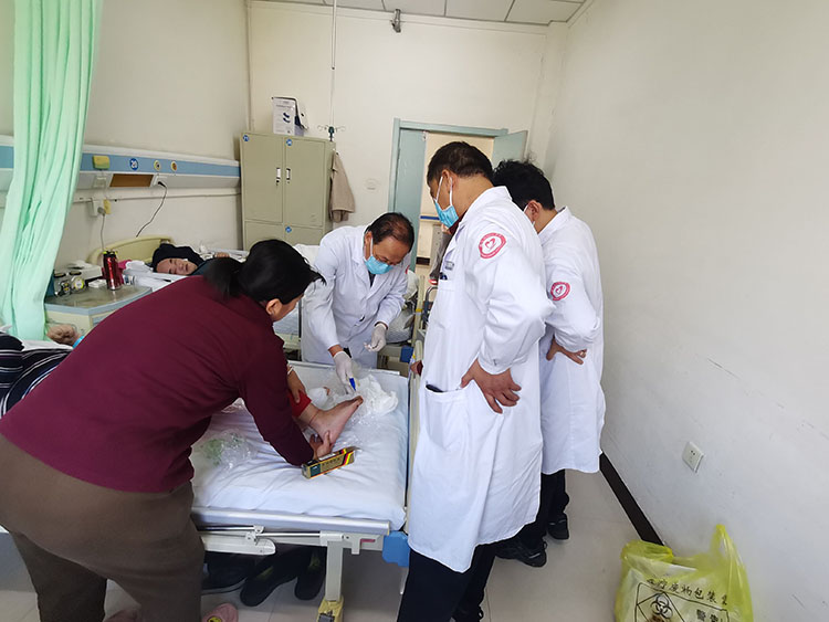 11月6日,《中國(guó)燒傷創(chuàng)瘍雜志》編委、燒傷創(chuàng)瘍?cè)偕t(yī)療技術(shù)臨床專家張強(qiáng)主任應(yīng)邀到訪英山縣人民醫(yī)院,參與會(huì)診一位電擊傷患者。張主任與臨床工作人員一起了解患者受傷情況,認(rèn)真細(xì)致檢查傷口,并共同商討制定了治療和后期康復(fù)方案,得到患者家屬和臨床人員的一致好評(píng)。