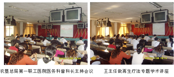 應(yīng)云南省農(nóng)墾總局第一職工醫(yī)院的邀請(qǐng),中國中西醫(yī)結(jié)合學(xué)會(huì)燒傷專業(yè)委員會(huì)常委、北京美寶燒傷創(chuàng)瘍研究所副所長、臨床研究部主任王洪生研究員于2010年11月26日來到該院進(jìn)行技術(shù)交流。王洪生研究員首先到該醫(yī)院燒傷外科為該院收治的大面積燒傷患者會(huì)診,指導(dǎo)該院醫(yī)生如何規(guī)范應(yīng)用再生醫(yī)療技術(shù)及創(chuàng)面正確的處理方法,并于當(dāng)日下午3時(shí)在該院進(jìn)行“再生療法在糖尿病足等難治性創(chuàng)傷創(chuàng)面治療的新進(jìn)展”專題學(xué)術(shù)講座。