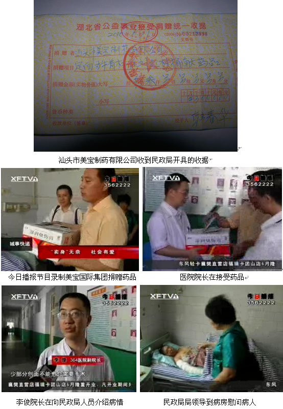 由于該欄目的收視率非常高,當(dāng)美寶國(guó)際集團(tuán)襄樊地區(qū)辦事處的劉平同志收看了此報(bào)道后,他在第一時(shí)間向駐湖北省區(qū)領(lǐng)導(dǎo)、醫(yī)藥集團(tuán)總裁楊智斌進(jìn)行了匯報(bào),美寶國(guó)際集團(tuán)的領(lǐng)導(dǎo)在得知情況后當(dāng)即作出指示,要求向劉洪林患者采取救助,并在必要之時(shí)派出專家組進(jìn)行會(huì)診救助,這些工作必需在24小時(shí)之內(nèi)完成。在接到領(lǐng)導(dǎo)的指示后,美寶國(guó)際集團(tuán)湖北辦事處主任黃彥勇帶領(lǐng)湖北辦事處所有工作人員帶著籌備好的藥物——美寶濕潤(rùn)燒傷膏及美寶創(chuàng)瘍貼,冒著酷暑趕到了燒傷創(chuàng)瘍中心襄樊分中心為患者進(jìn)行了愛心捐贈(zèng)。