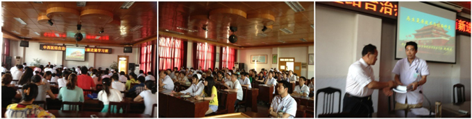 2014年6月10日應(yīng)泰州溱潼人民醫(yī)院的邀請,北京燒傷創(chuàng)瘍研究所副所長趙瑞慶教授在該院舉辦了一期院級再生復(fù)原技術(shù)培訓(xùn)班,全院醫(yī)務(wù)人員97人參加了培訓(xùn)班??平炭仆蹑褐魅沃鞒峙嘤?xùn)會議。趙瑞慶教授在培訓(xùn)中做了《燒傷創(chuàng)瘍再生醫(yī)學(xué)與療法在多學(xué)科的運用》專題報告,培訓(xùn)后解答了大家提出的諸多臨床問題,并代表研究所向該院贈送再生系列叢書20本。