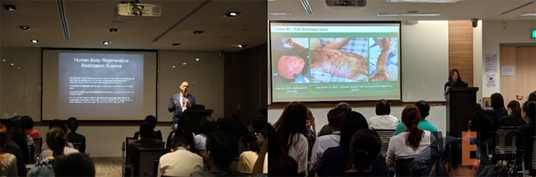 8月16日中午,ISRMWR在新加坡中央醫(yī)院Academia學(xué)術(shù)報(bào)告廳White Space分會(huì)場(chǎng)再一次舉辦了再生醫(yī)學(xué)專(zhuān)場(chǎng)。本次專(zhuān)場(chǎng),特別邀請(qǐng)到中山大學(xué)附屬第一醫(yī)院燒傷外科劉旭盛主任作為會(huì)議主持,分別有來(lái)自中國(guó)、印尼和馬來(lái)西亞的4位再生醫(yī)學(xué)專(zhuān)家?guī)?lái)了精彩演講。來(lái)自印尼雅加達(dá) Rawamangun醫(yī)院的Donna Savitry醫(yī)生,她是印尼整形外科學(xué)會(huì)副秘書(shū)長(zhǎng),已有近10年的再生醫(yī)療經(jīng)驗(yàn)。她帶來(lái)的題目是“Strategy to Use MEBO Effectively in Low Budget Burn Patient: An Observation in Daily Practice“。在演講中,她分享了其多年的治療經(jīng)驗(yàn)和多個(gè)精彩病例,量化藥量使用評(píng)估讓人耳目一新。韶關(guān)市第一人民醫(yī)院燒傷科的陳錚主任,他的演講題目是“Treating Generalized Skin Diseases with MEBO”。他分享了數(shù)例藥物導(dǎo)致大皰表皮松解癥的嚴(yán)重病例,患者病情之嚴(yán)重,治療效果之顯著,令與會(huì)者贊嘆不已。來(lái)自馬來(lái)西亞?wèn)|海岸線(xiàn)的Mohd Zurairie醫(yī)生,今年5月到中國(guó)長(zhǎng)沙開(kāi)展過(guò)學(xué)術(shù)交流,他的演講題為“Exudates Management and Cell Regenerative in Chronic Wound Lessening Healing Time”。Zurairie醫(yī)生應(yīng)用再生醫(yī)療技術(shù)時(shí)間不長(zhǎng),在演講上,他和與會(huì)者客觀地分享了他的學(xué)習(xí)和探索體會(huì)。北京南苑醫(yī)院燒傷創(chuàng)瘍中心的陳永翀主任分享的內(nèi)容為“The New Application of Burns Regenerative Medicine Therapy in Malignant Ulcers Treatment”。在演講中,他展示了再生醫(yī)療技術(shù)在治療惡性潰瘍中的卓越效果,并呼吁與會(huì)專(zhuān)家共同研究探索燒傷再生醫(yī)療技術(shù)在這一領(lǐng)域的更深層次應(yīng)用可行性。