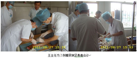 2011年8月27日下午三時,中國燒傷創(chuàng)瘍雜志副總編輯、中國中西醫(yī)結(jié)合學會燒傷專業(yè)委員會常委兼秘書、北京燒傷創(chuàng)瘍研究所副所長、臨床研究部主任王洪生研究員應(yīng)貴港市中醫(yī)院韋赤勇院長的邀請,在廣西田東縣人民醫(yī)院進行臨床學術(shù)交流后,王主任不辭辛苦從田東縣趕赴貴港市中醫(yī)醫(yī)院到為該院收治的2例糖尿病足病人會診,到達貴港市中醫(yī)醫(yī)院后,在韋赤勇院長陪同下,王主任深入該醫(yī)院創(chuàng)傷該科、燒傷創(chuàng)瘍科病區(qū),先后為2例糖尿病足患者會診,并親自為這2例病人做示范清創(chuàng)手術(shù),并在清創(chuàng)時講解糖尿病足創(chuàng)面處理要點,得到了該院韋院長、該科室主任楊柳明和主管醫(yī)生的高度認同。會診結(jié)束后,韋赤勇院長又與王主任就該院燒傷創(chuàng)瘍??平诤椭虚L期發(fā)展規(guī)劃進行了廣泛而深入的交流和溝通,韋院長表示一定要讓我國著名生命科學家、醫(yī)學家、人體再生復原科學的創(chuàng)立者徐榮祥教授創(chuàng)立的再生復原療法在該醫(yī)院開花結(jié)果,通過再生復原療法對糖尿病足等難愈性創(chuàng)面獨特的療效將該醫(yī)院的創(chuàng)傷外科、燒傷創(chuàng)瘍科打造成貴港市的優(yōu)勢、特色??疲詈箜f院長還表示將派一名醫(yī)生到國內(nèi)較為成熟的醫(yī)院去進修再生復原技術(shù),為打造難愈性創(chuàng)面優(yōu)勢??票M快培養(yǎng)人才。