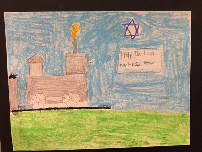 在RxX工作人員的協(xié)助下,專業(yè)攝制團(tuán)隊(duì)已提前錄制好猶太長者們生平故事的訪談視頻。12月3日活動(dòng)當(dāng)天,洛杉磯猶太社區(qū)周日學(xué)校部分學(xué)前班到七年級(jí)的學(xué)生們首先觀看了訪談視頻,然后將對(duì)視頻中故事的感悟用畫作呈現(xiàn)出來。