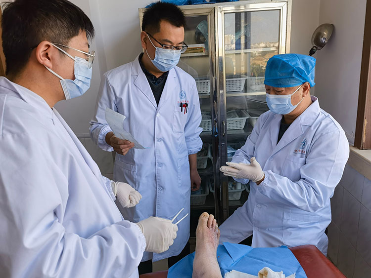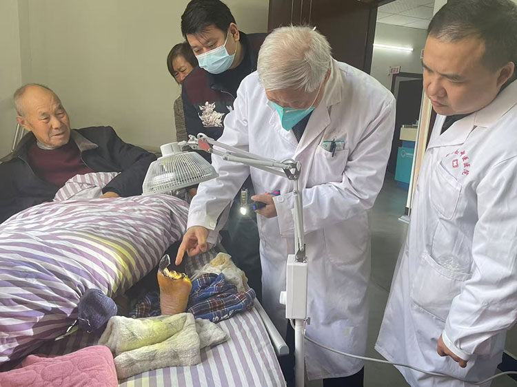 2024年11月27日,《中國燒傷創(chuàng)瘍雜志》編委、燒傷創(chuàng)瘍再生醫(yī)療技術(shù)臨床專家張強應(yīng)?邀來到潛山市立醫(yī)院?,對該院收治的一名糖尿病足患者進行查看會診,進行創(chuàng)面清創(chuàng)、擴創(chuàng)以及對治療方案給予指導(dǎo),受到醫(yī)患雙方一致好評!